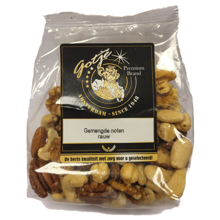 | Ingrediënten: CASHEWNOTEN, AMANDELEN, HAZELNOTEN, WALNOTEN, PARANOTEN, PECANNOTEN. Allergenen: NOTEN. Verpakt in een bedrijf waar ook andere NOTEN en PINDA'S verwerkt worden. Rauwe noten koel, droog (goed afgesloten) en donker bewaren. |