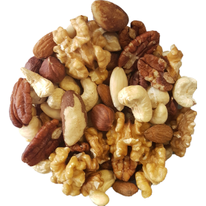 | Ingrediënten: CASHEWNOTEN, AMANDELEN, HAZELNOTEN, WALNOTEN, PARANOTEN, PECANNOTEN. Allergenen: NOTEN. Verpakt in een bedrijf waar ook andere NOTEN en PINDA'S verwerkt worden. Rauwe noten koel, droog (goed afgesloten) en donker bewaren. |