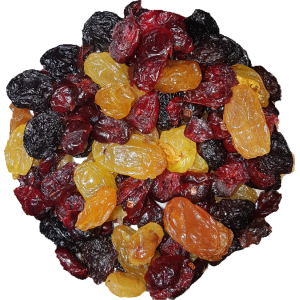 | Ingrediënten: rozijnen, cranberry's, rietsuiker, plantaardige olieën, conserveermiddel E220 (SULFIET). Allergenen: bevat SULFIET. Kan sporen bevatten van NOTEN, PINDA, SESAM. Ondanks zeer zorgvuldige schoning kan er onbedoeld een takje, steentje of kern zijn achtergebleven. |